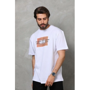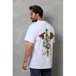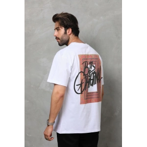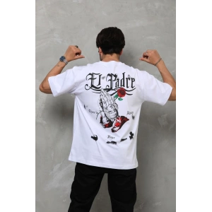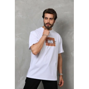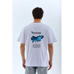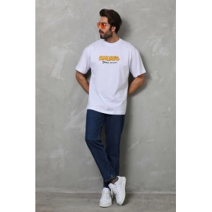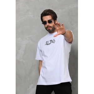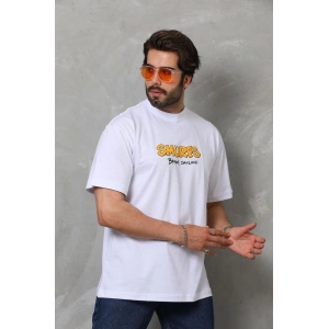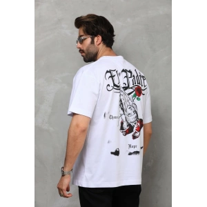 Unisex Dikişli Baskılı Oversize T-Shirt - Beyaz
