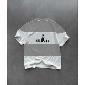 Unisex Bisiklet Yaka Baskılı Parçalı Oversize T-Shirt - Gri