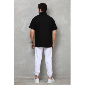 Unisex Yarım Fermuarlı Baskılı Oversize T-Shirt - Siyah