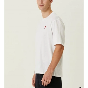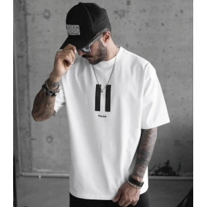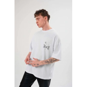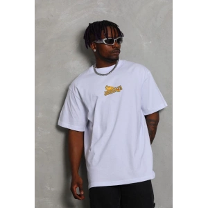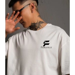 Unisex Bisiklet Yaka Baskılı Oversize T-Shirt - Beyaz