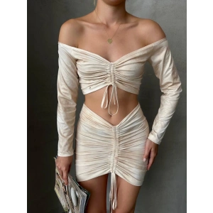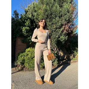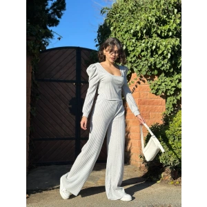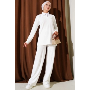 Gömlek Yaka Fitilli Salaş İkili Takım beyaz T4300