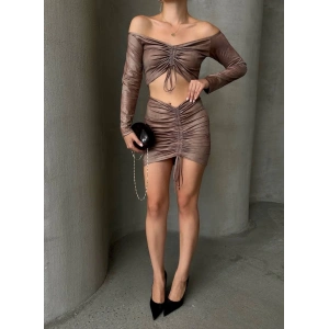 Gömlek yaka kaplama düğmeli takım kahve st265866