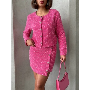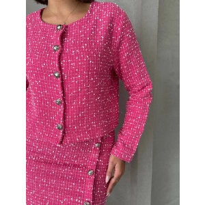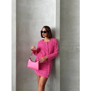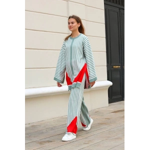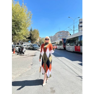 Uzun hırka içi elbise ikili triko takım ekose baklava desen haki kırmızı