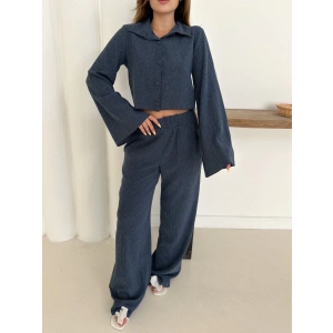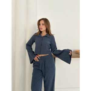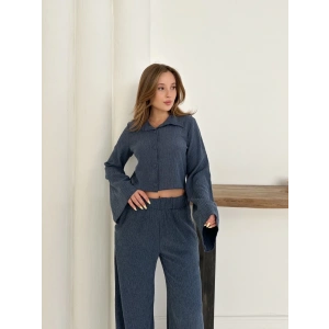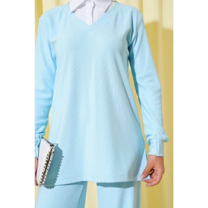 Gömlek Yaka Fitilli Salaş İkili Takım Buz Mavisi T4300