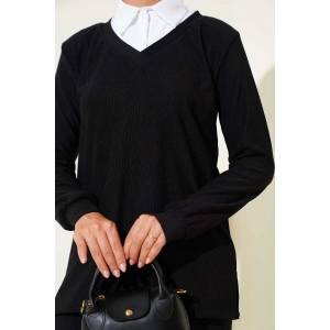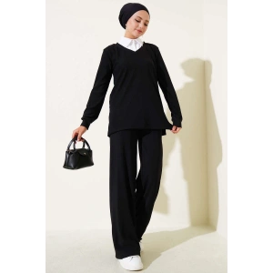 Gömlek Yaka Fitilli Salaş İkili Takım siyah T4300