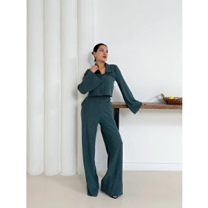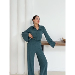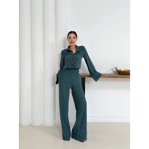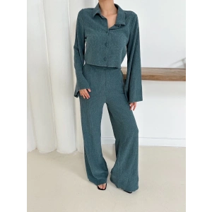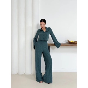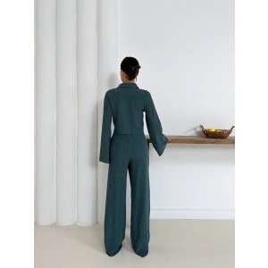 Gömlek yaka kaplama düğmeli takım petrol yeşili st265866