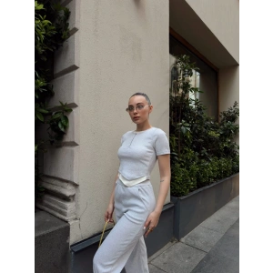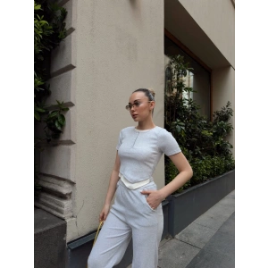 Düğme yakalı gri alt üst takım s3943
