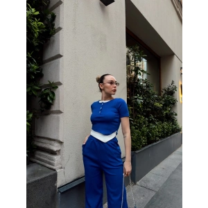 Düğme yakalı saks alt üst takım s3943