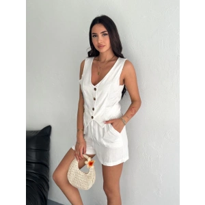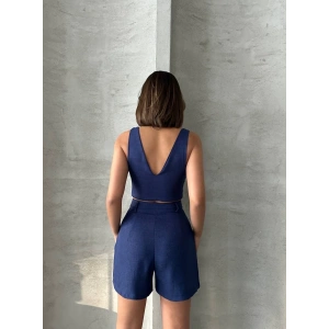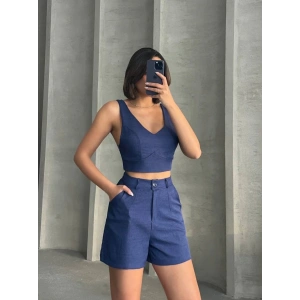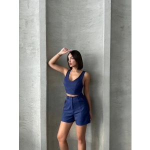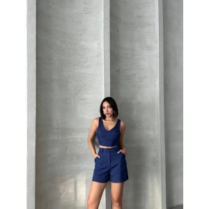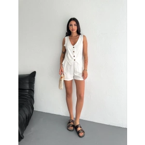 Kadın keten şort yelek takım s3461