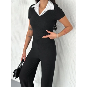 Düğme yakalı siyah alt üst takım s3943