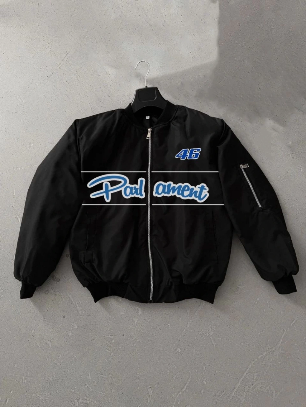 Kadın Wild One Baskılı Bomber Mont – Siyah Renk, Oversize Rahat Kalıp, Fermuarlı, Cepli, Günlük Şık Kapitone Mont - Siyah