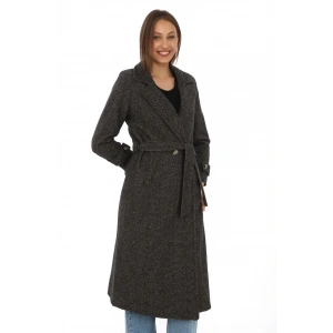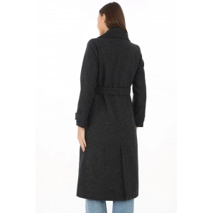 Kadın Balık Sırtı Kaşmir Uzun Kaşe Kaban - Füme