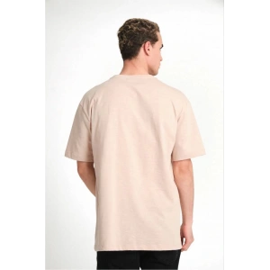 Erkek 24/1 Düz A Kalite Oversize T-shirt - Bej