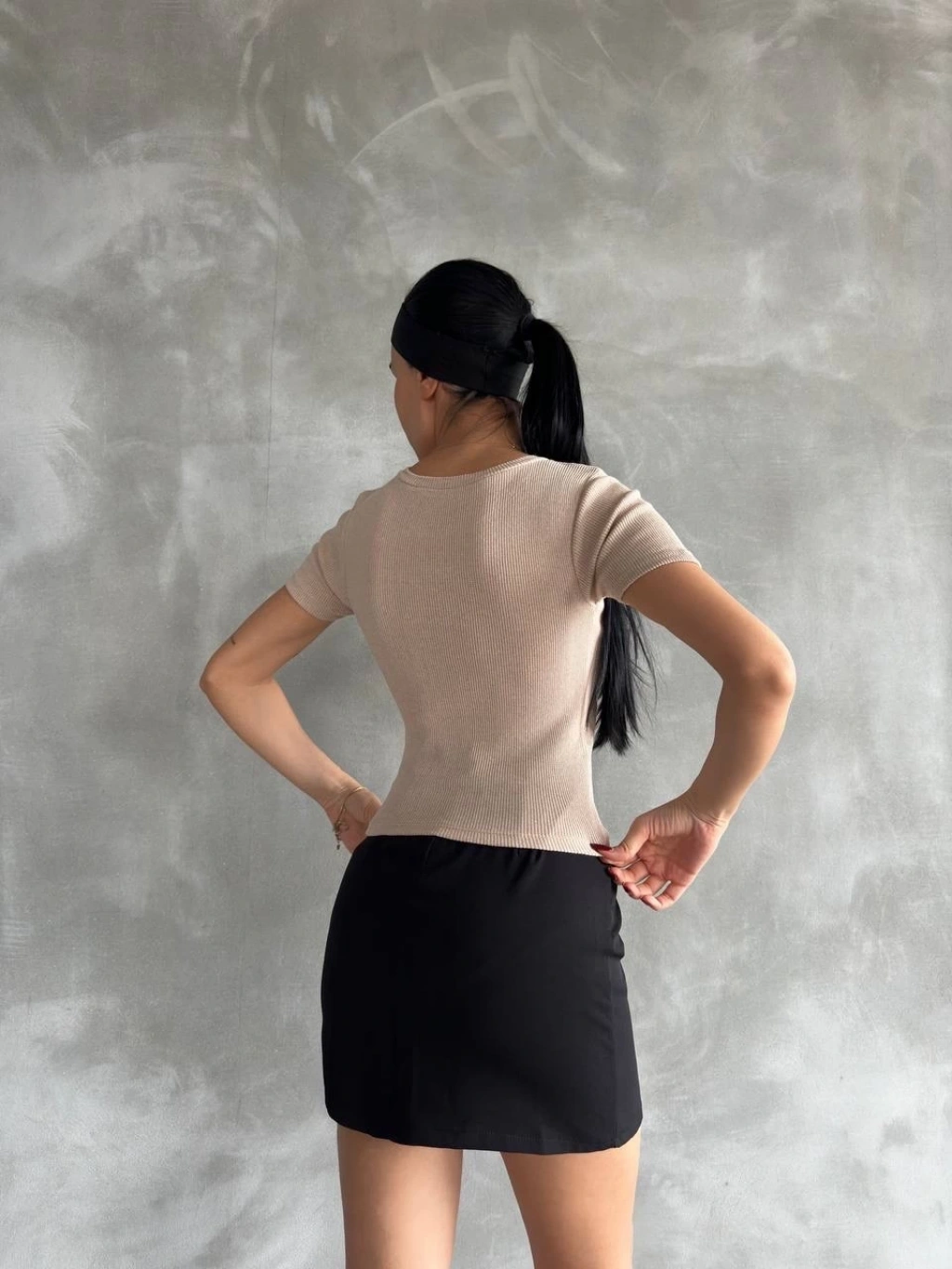Omzu Açık Fermuarlı Bluz siyah T4330