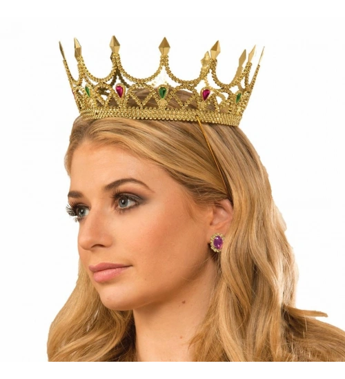 Taşlı Rönesans Kostümlü Kraliyet Ortaçağ Altın Kraliçe Prenses Tacı