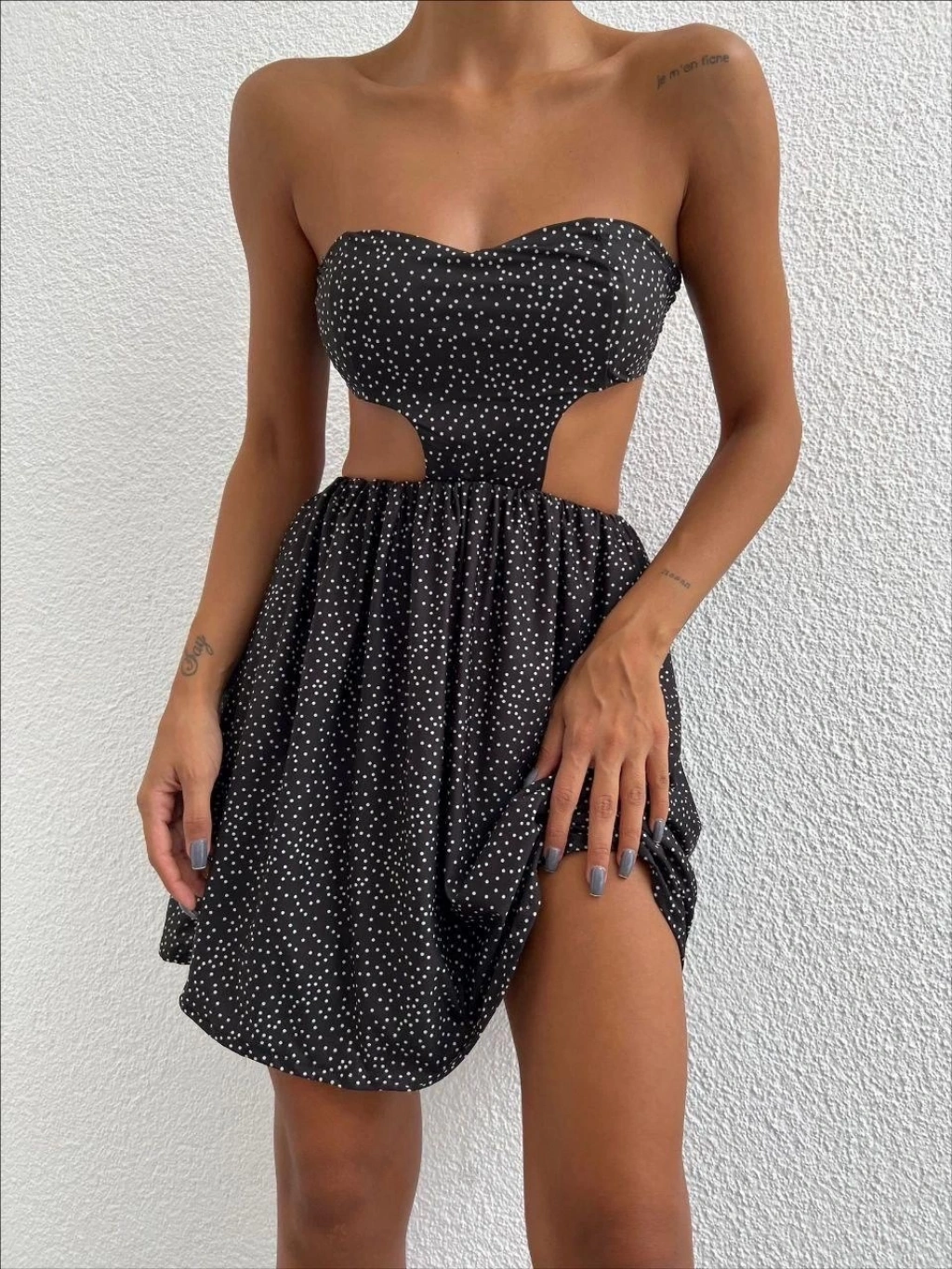 Askılı ch kumaş düğmeli elbise siyahbeyaz h265007