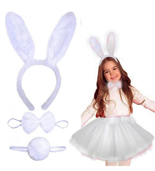 Tavşan Tacı Eteği Papyonu ve Kuyruk Kostüm Seti Beyaz Renk Çocuk Boy
