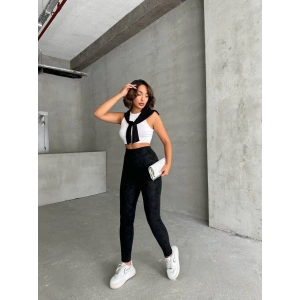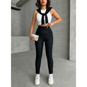Gizli yan fermuarlı bulut desenli tayt siyah h248638