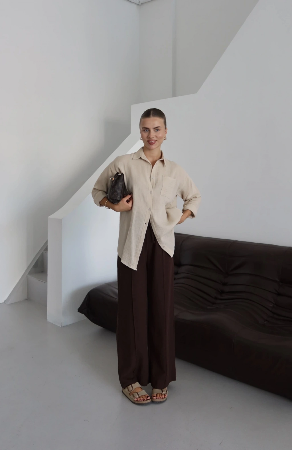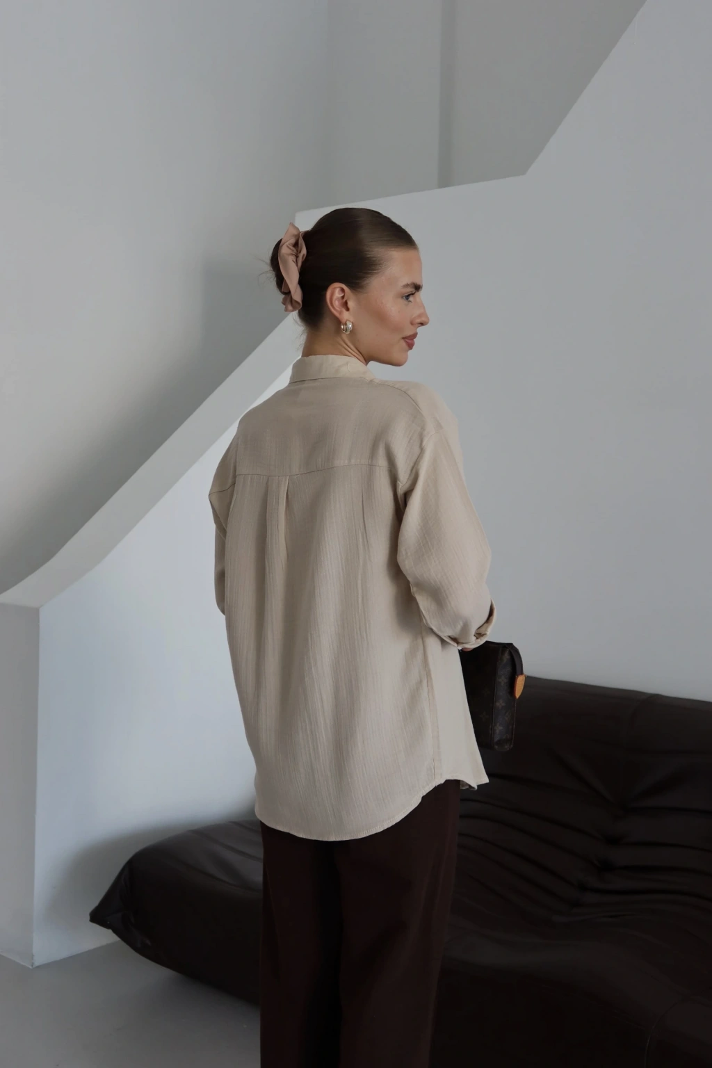 Tek cepli müslin gömlek kahve pt