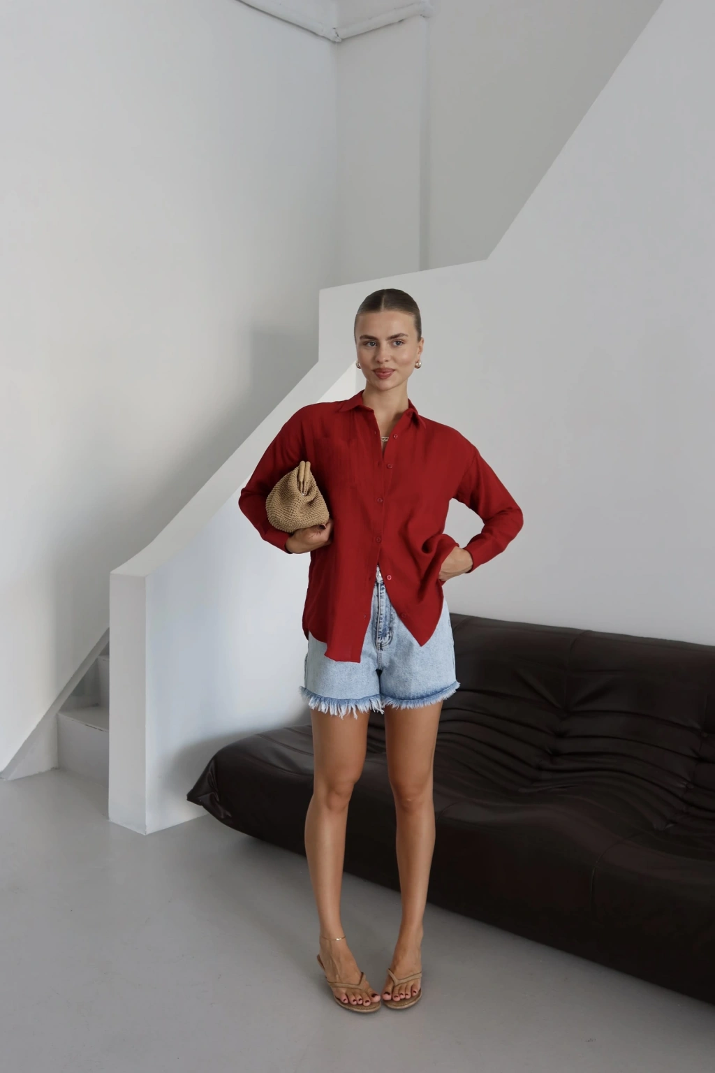 Şıklığı ve rahatlığı bir arada sunan Tek Cep Müslin Gömlek ile tarzınızı ön plana çıkarın. Bordo rengi ile dikkat çeken gömlek, şık detaylarıyla göz kamaştırıyor.