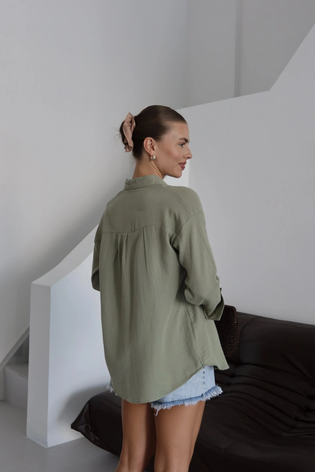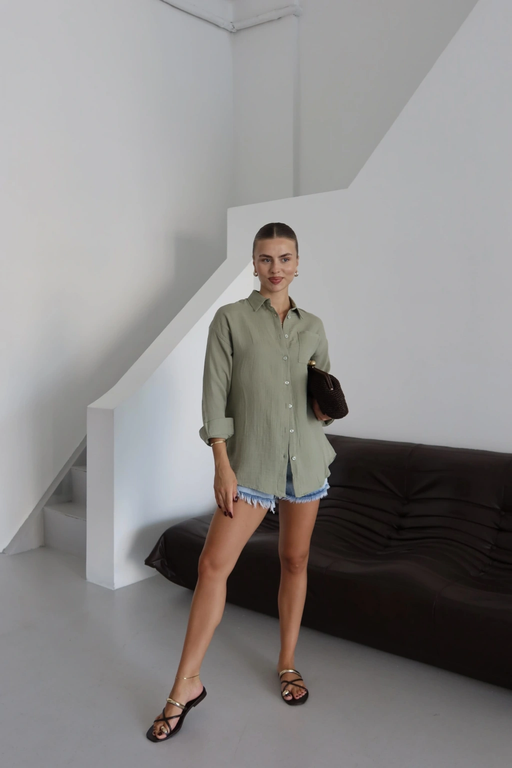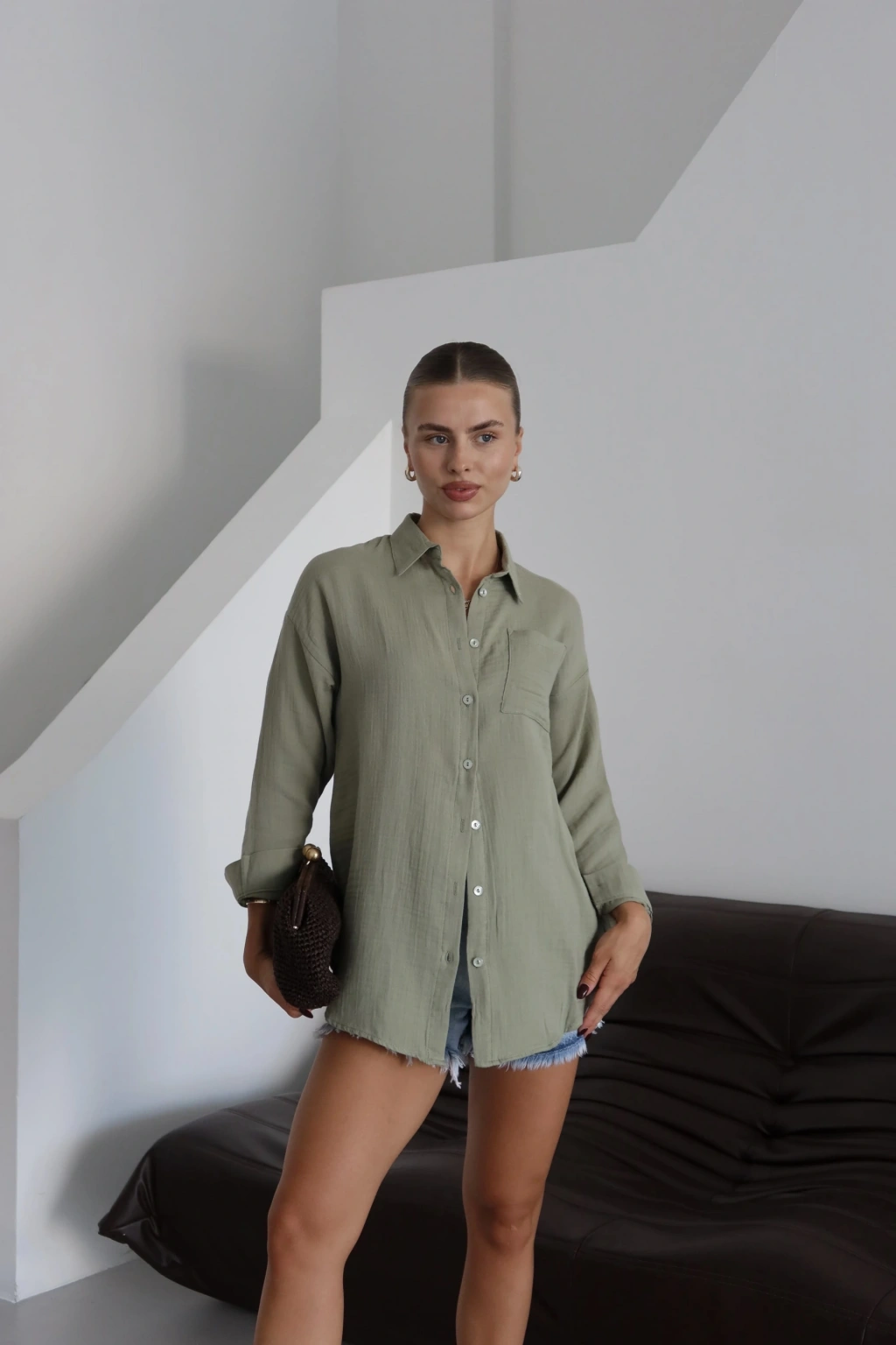 Tek cepli müslin gömlek kahve pt