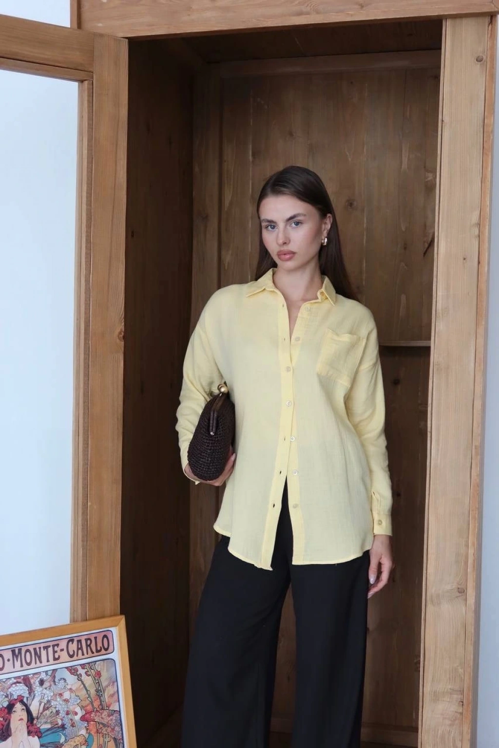Çift renkli kısa gömlek vizonbeyaz s4021