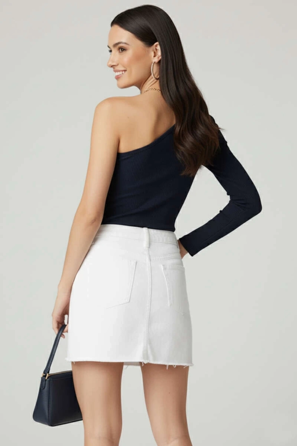 Asimetrik yaka bluz lacivert pt