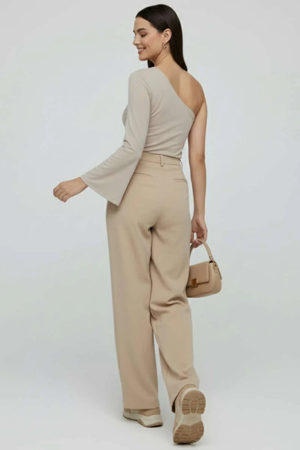 Asimetrik yaka bluz kahve pt