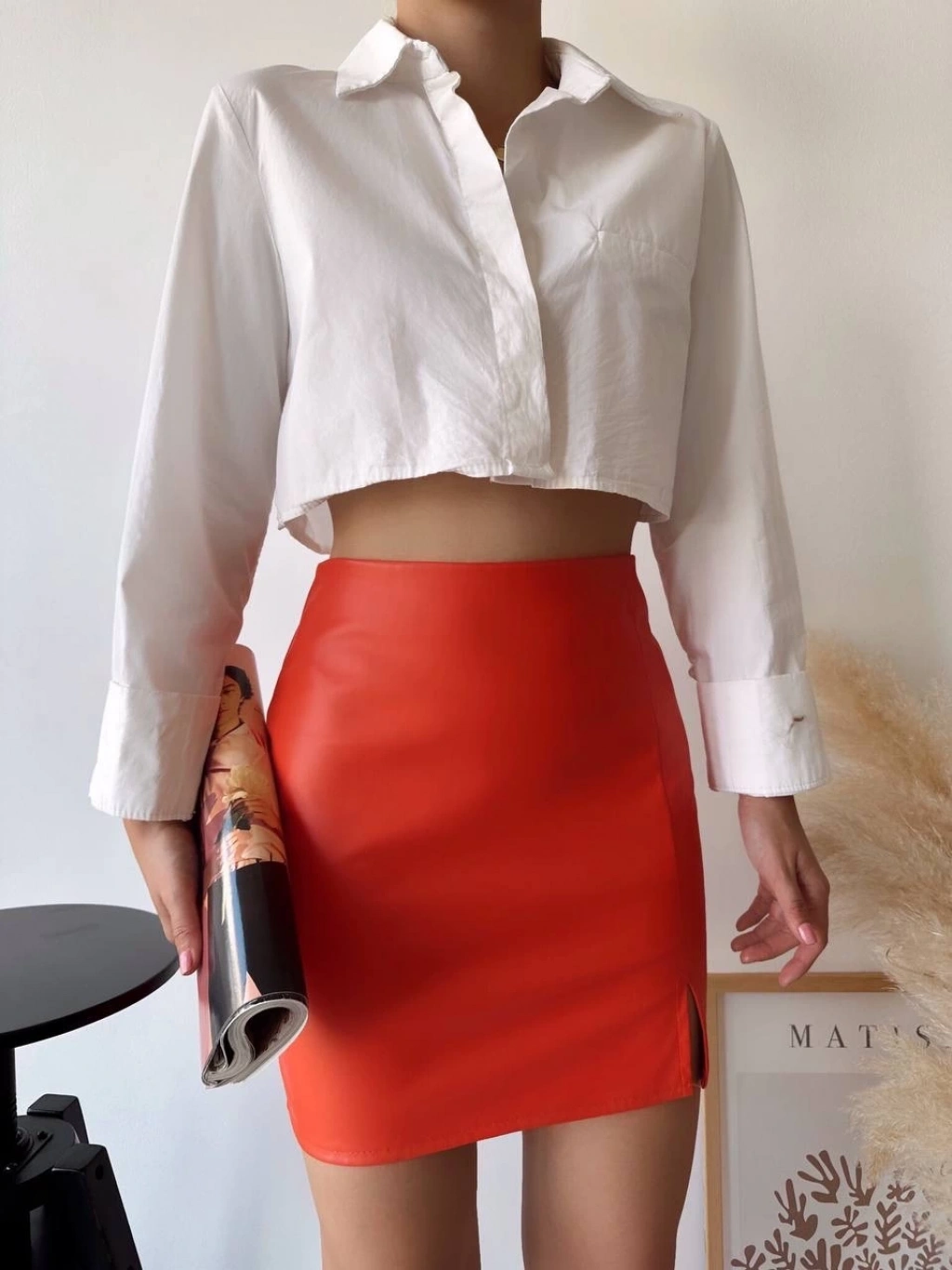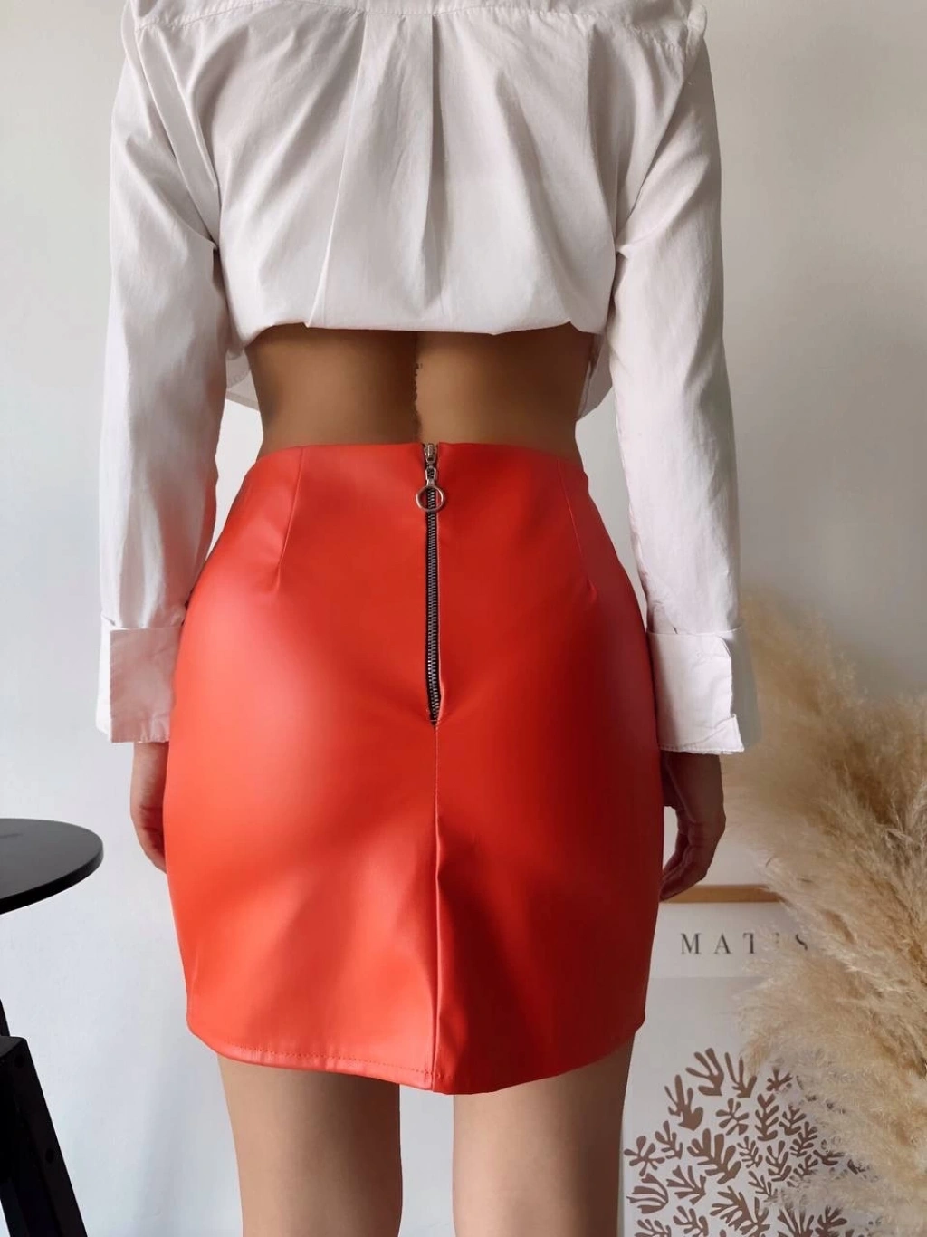 Cep detaylı oval kapaklı deri etek fuşya h240048