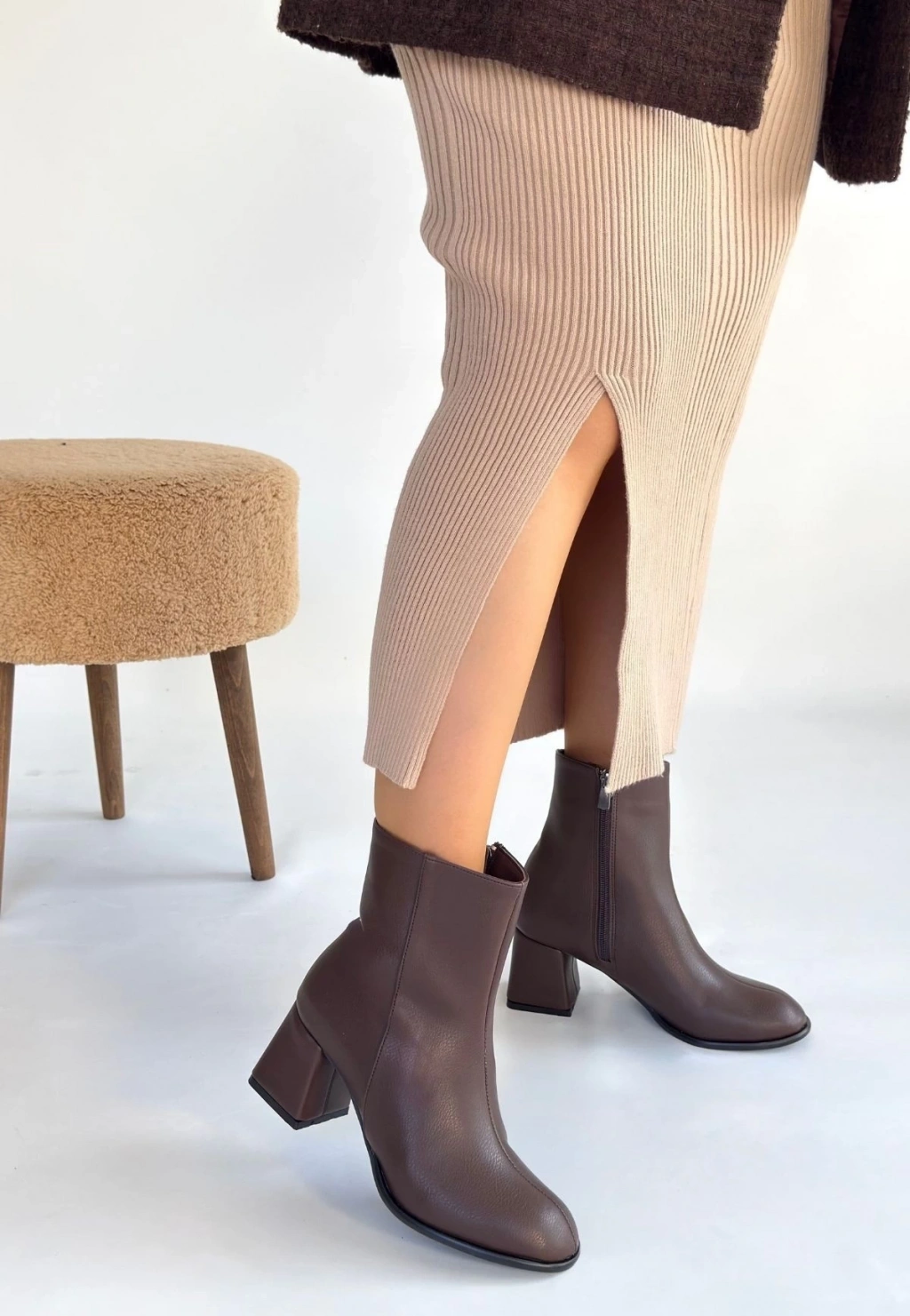 Linma Acı Kahve Cilt Bağcıklı Topuklu Bot