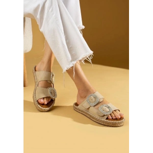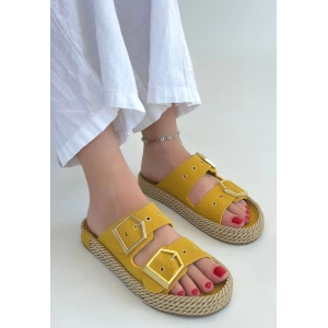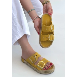 Loera Sarı Nubuk Çift Tokalı Terlik