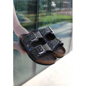 Edaj Siyah Nubuk Boncuk İşlemeli Terlik
