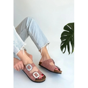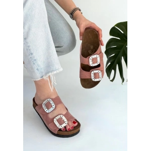 Edaj Kahverengi Nubuk Boncuk İşlemeli Terlik
