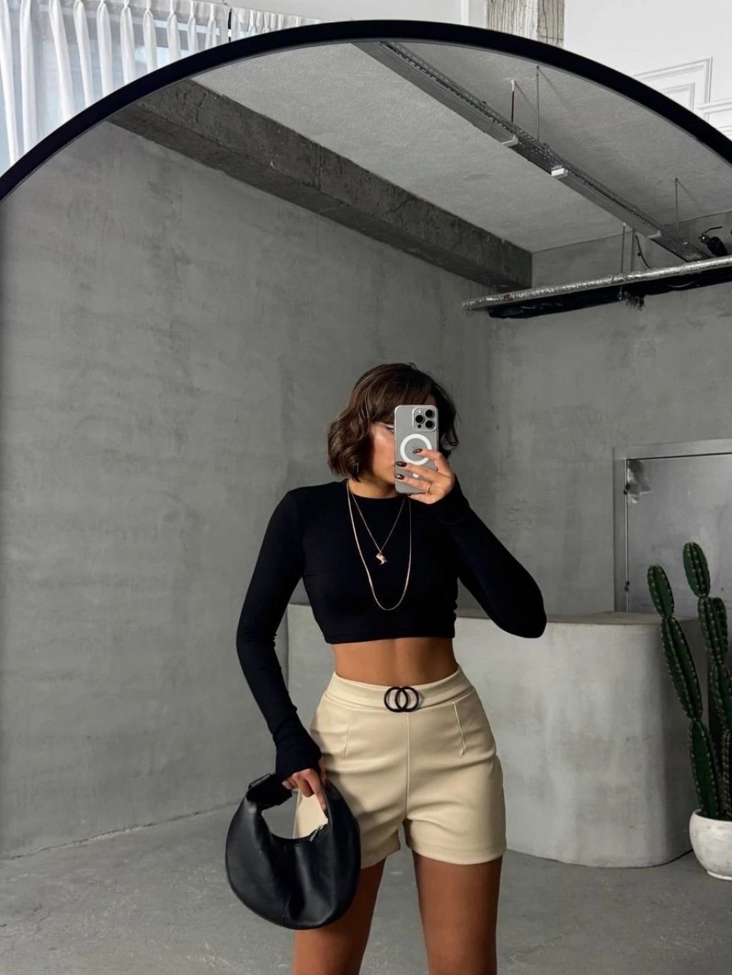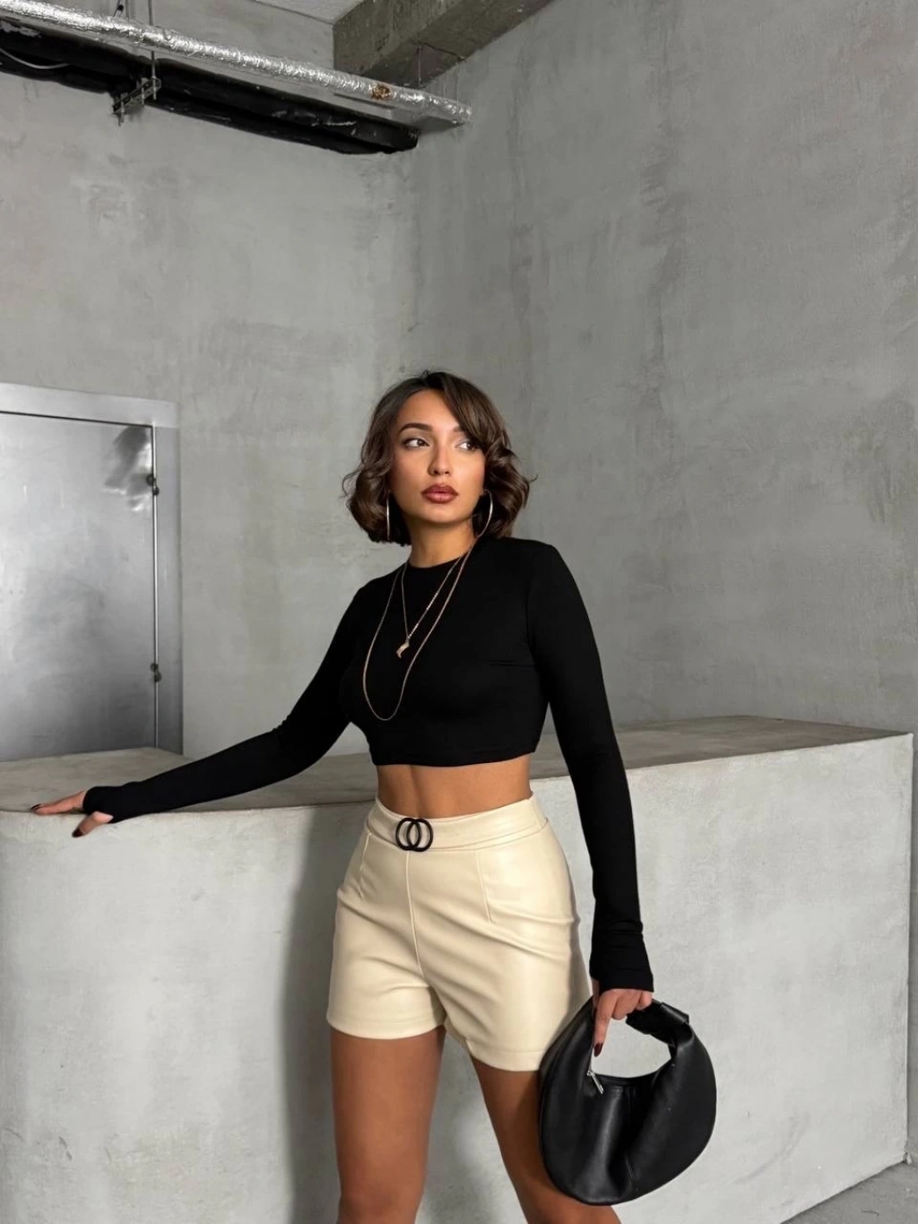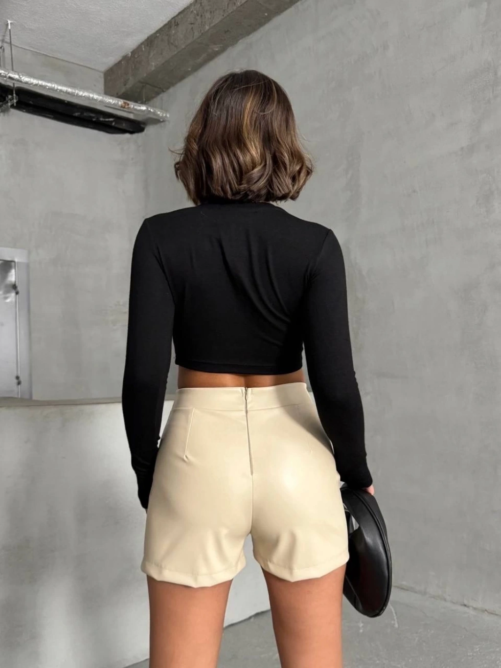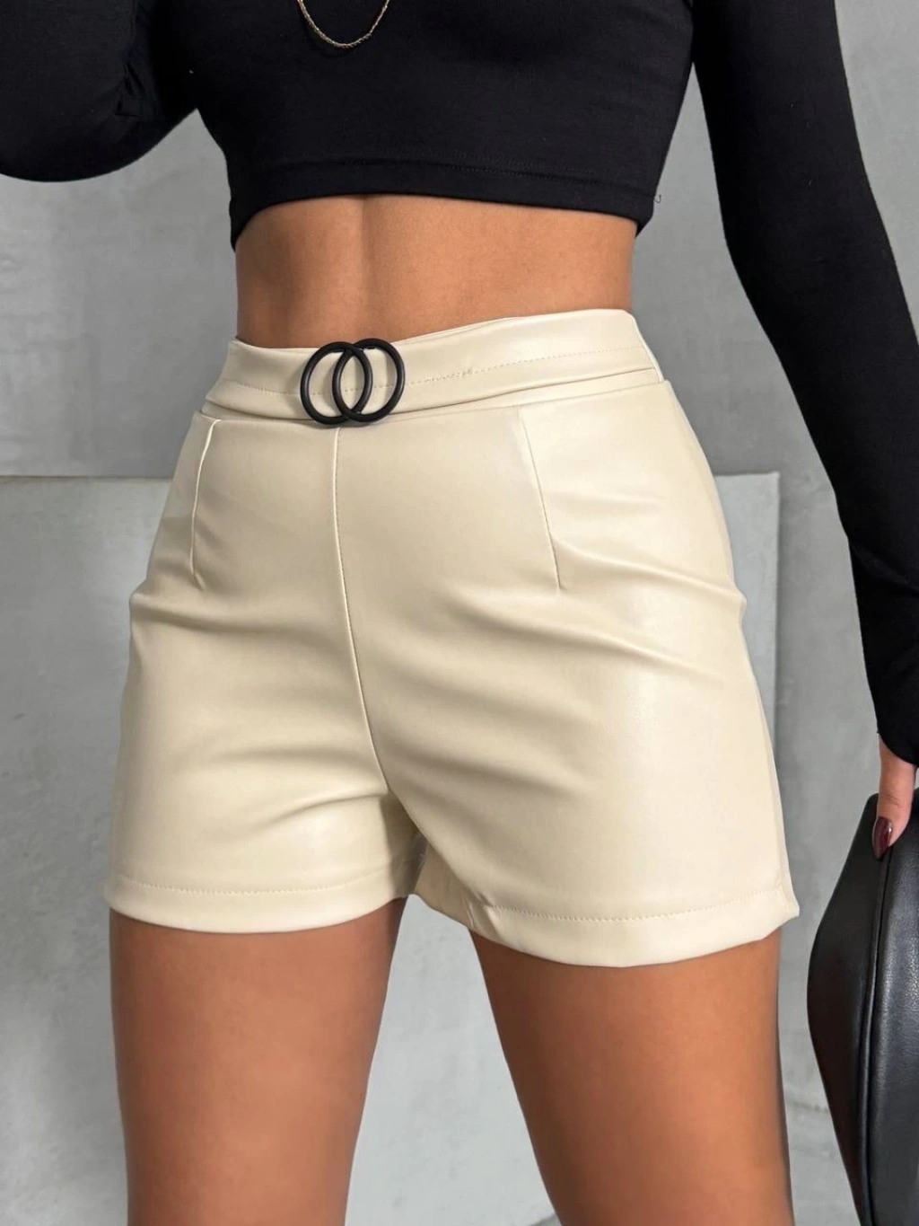 Pileli deri şort siyah h240053