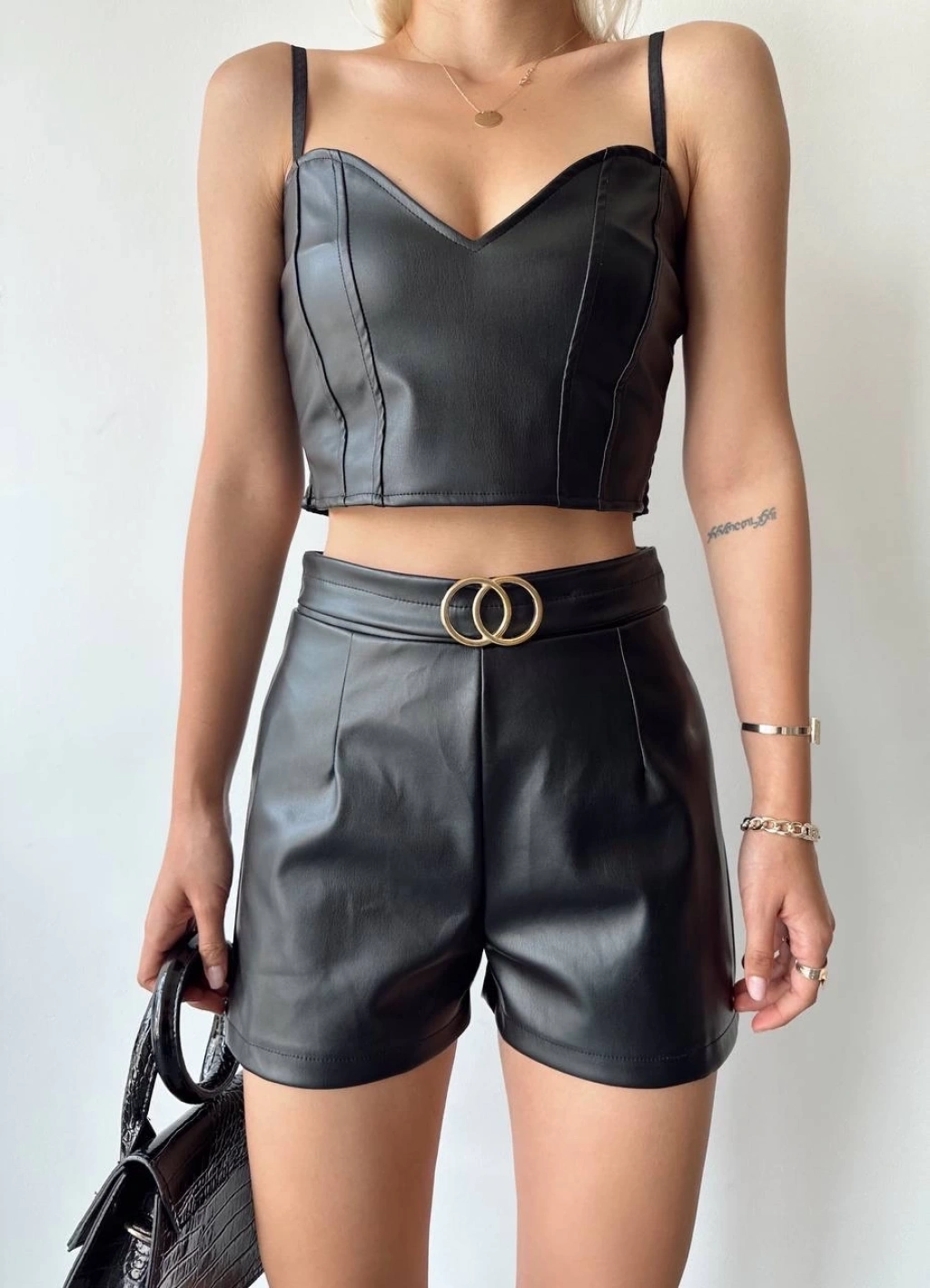 Kapaklı kaşe şort etek siyah beyaz kazayağı h261218