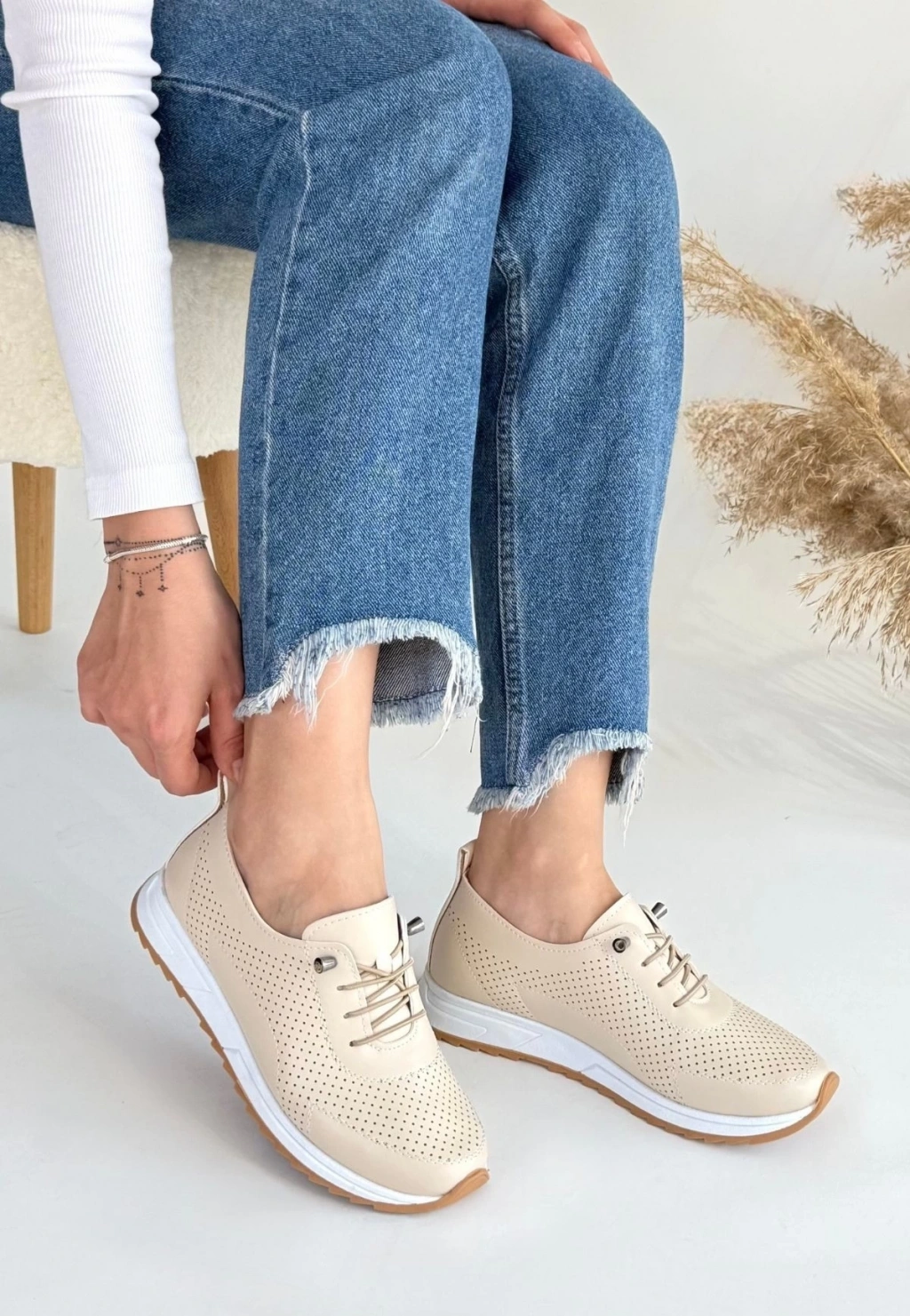 • Tone Bej Cilt Bağcıklı Spor Ayakkabı