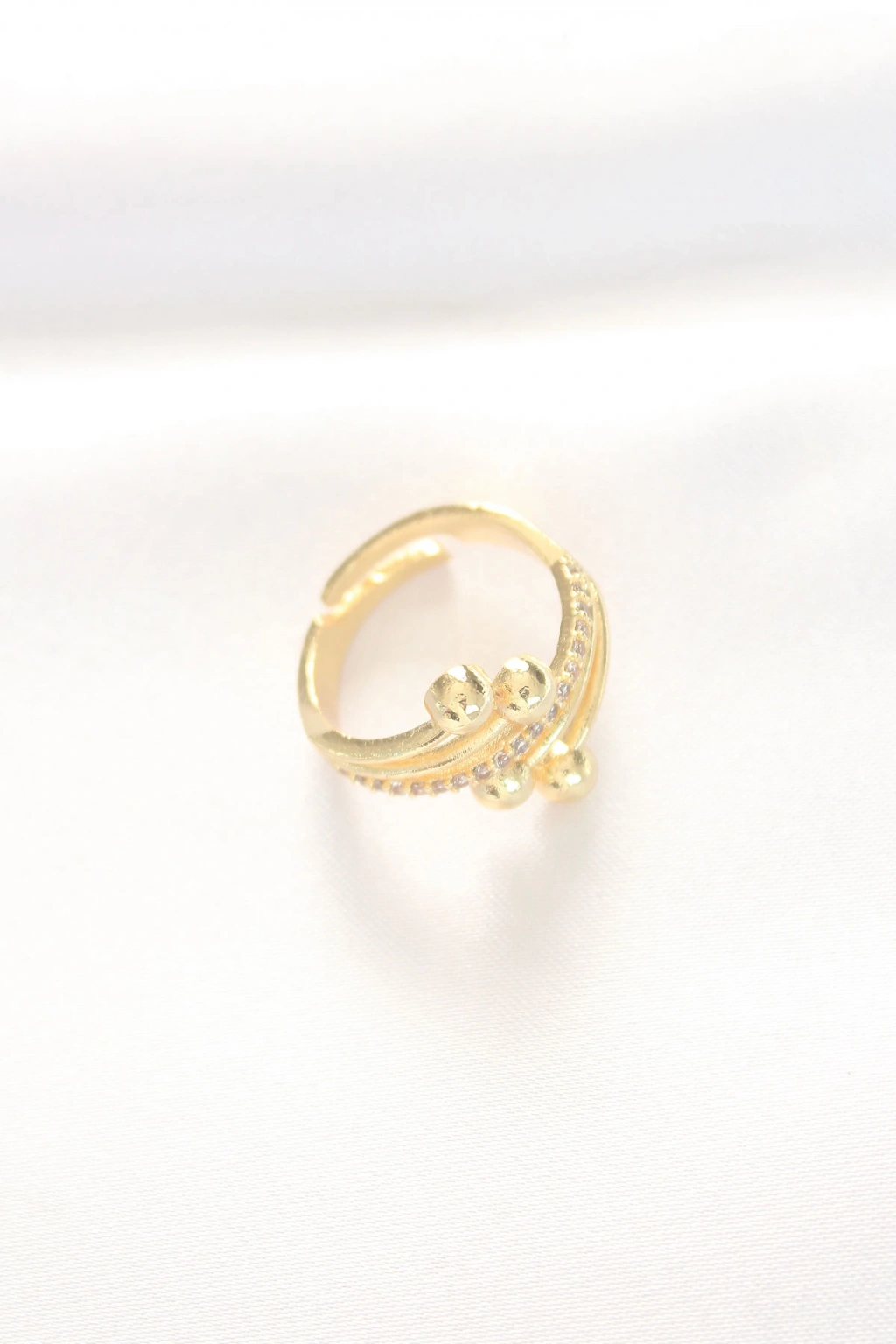 Topçuk Model Zirkon Taşlı Gold Renk Ayarlanabilir Yüzük