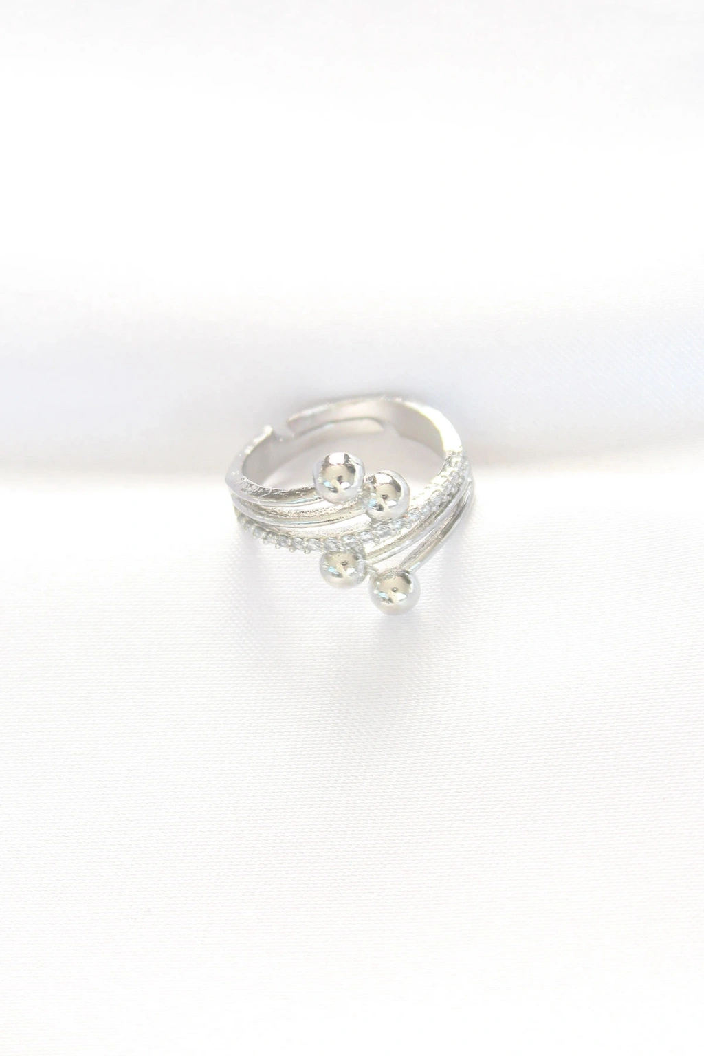 Topçuk Model Zirkon Taşlı Silver Renk Ayarlanabilir Yüzük