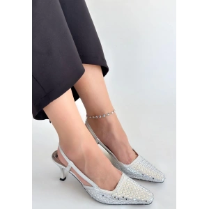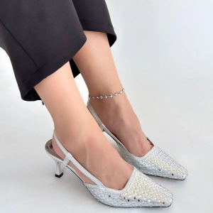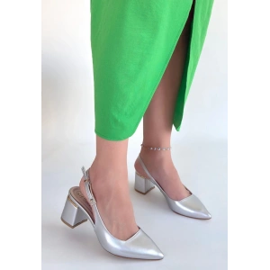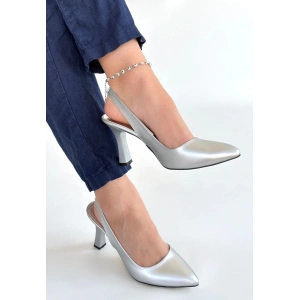 Feey Gümüş Cilt Topuklu Ayakkabı