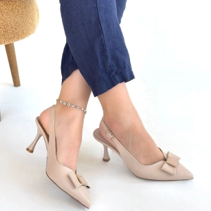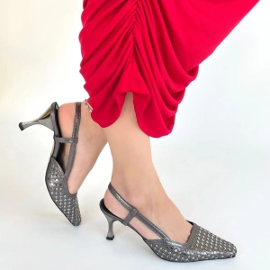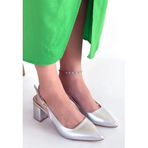 Buant Gümüş Cilt Topuklu Ayakkabı