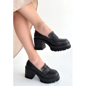 Janes Siyah Cilt Dolgu Topuk Ayakkabı