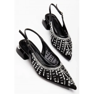 Piyar Siyah Taşlı Topuklu Ayakkabı