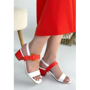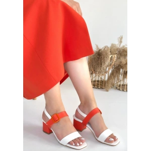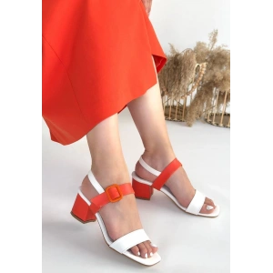 Year Beyaz Cilt Turuncu Detaylı Topuklu Ayakkabı