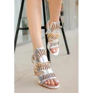 Lidya Gümüş Cilt Topuklu Ayakkabı