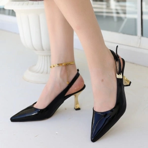 Desniy Siyah Cilt Topuklu Ayakkabı