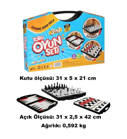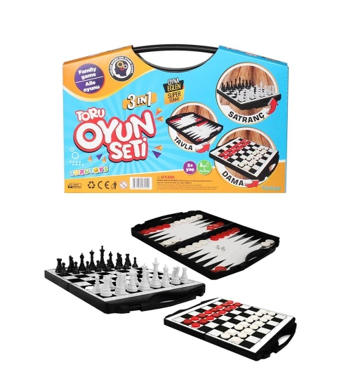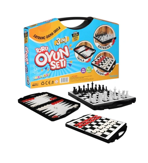 Toru 3 in 1 Çantalı Oyun Seti Satranç-Dama-Tavla