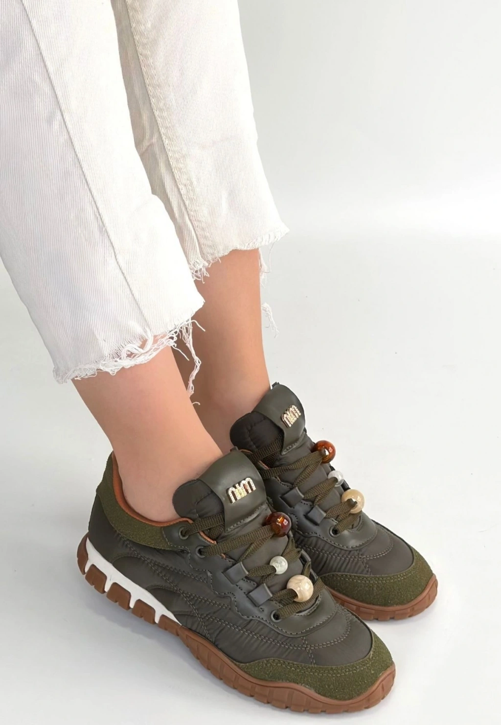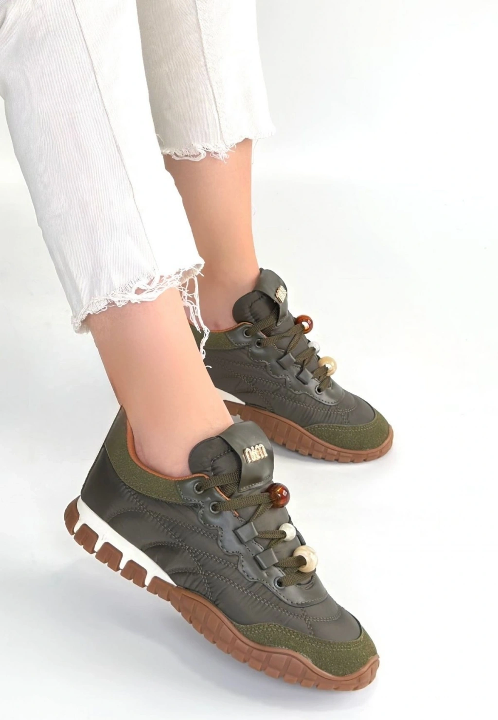 Rimay Beyaz Cilt Boncuk İşlemeli Spor Ayakkabı