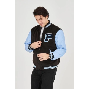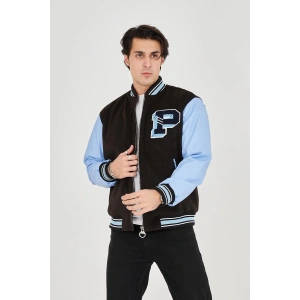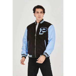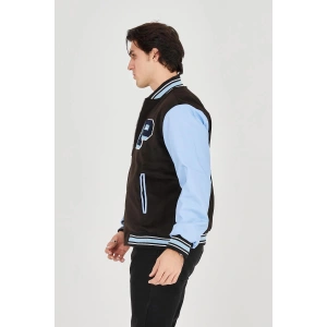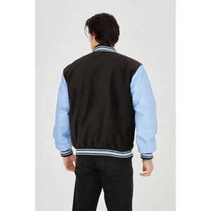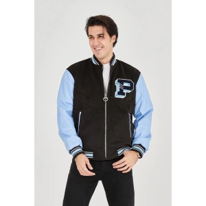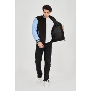 Erkek İçten Elyaf ve Astarlı Kolları Suni Deri Ceket - Mavi