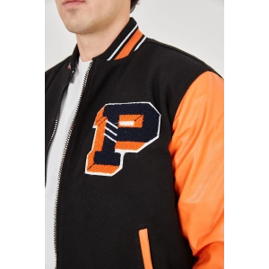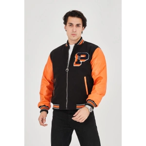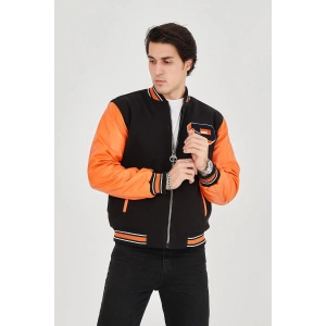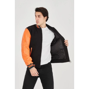 Erkek İçten Elyaf ve Astarlı Kolları Suni Deri Ceket - Turuncu