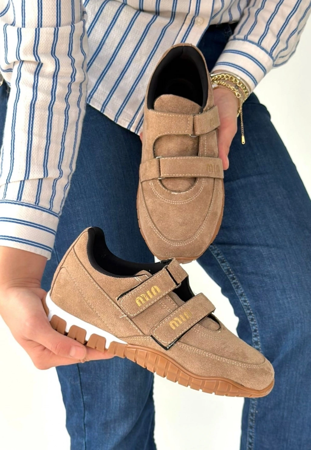 Tunga Kahverengi Süet Cırt Cırtlı Spor Ayakkabı
